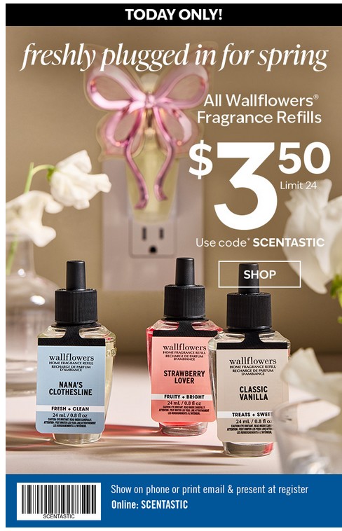 1/10 only! $3.50 all Wallflowers Fragrance Refills in store and online
