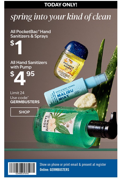 $1 All PocketBac Hand Sanitizers & Sprays & $4.95 All Hand Sanitizers with Pump in store and online