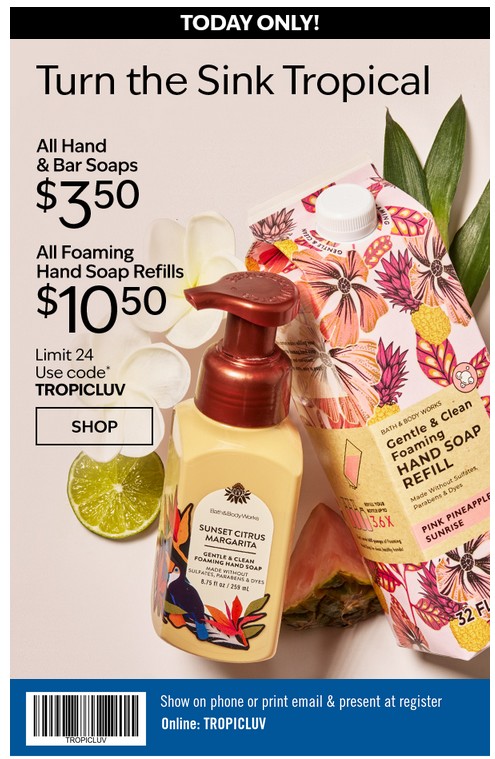 3/14 only! $3.50 all Hand Soaps & Bar Soaps & $10.50 all Foaming Hand Soap Refills in store and online