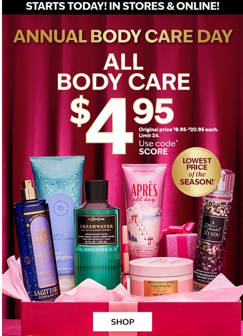 $4.95 all Body Care in store and online