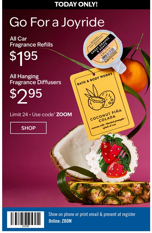 2/20 only! $1.95 all Car Fragrance Refills & $2.95 all Hanging Fragrance Diffusers in store and online