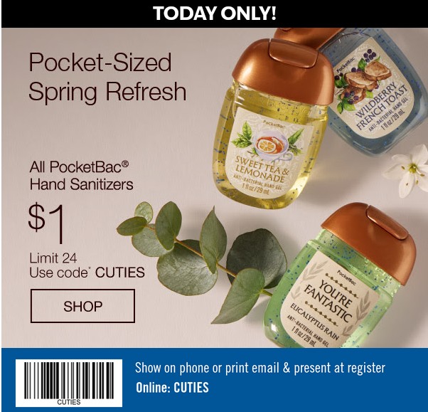 $1 all Pocketbac Hand Sanitizers in store and online